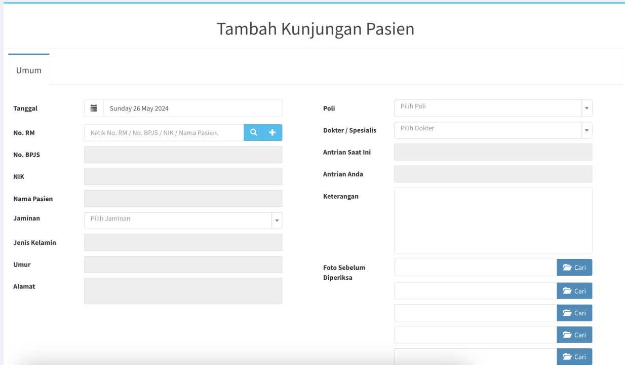 - Lalu akan muncul Form Tambah Kunjungan pasien