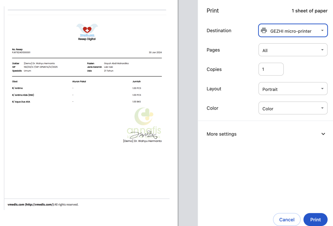 - Untuk mencetak resepnya, silahkan klik tombol cetak