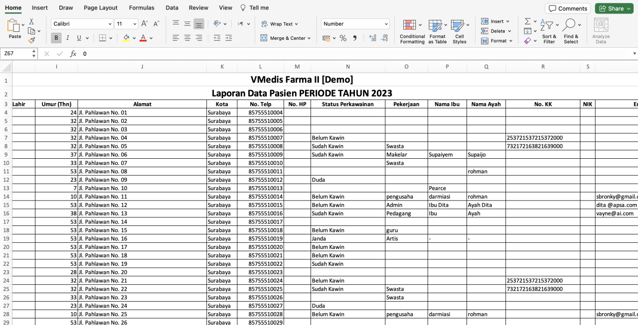 Menunya bisa anda akses di menu Master Data > Laporan Data Pasien