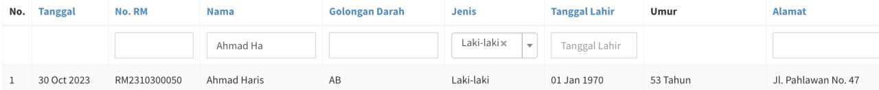 - Lalu untuk melihat Pasien yang tidak aktif, pilih Status Non-Aktif di kolom status
