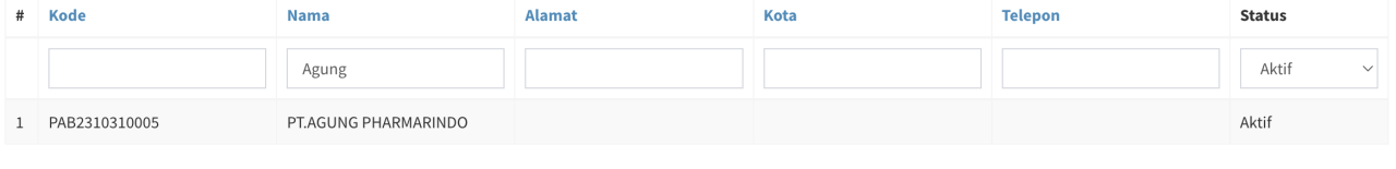 - Lalu untuk melihat Pabrik yang tidak aktif, pilih Status Non-Aktif di kolom status