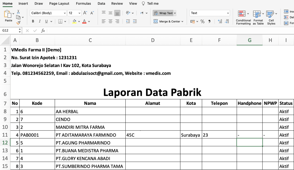 - Setelah itu akan muncul Laporan Data Pabrik sesuai periode
