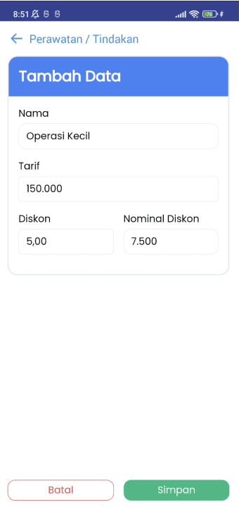 - Ubah data perawatan/tindakannya sesuai keinginan anda