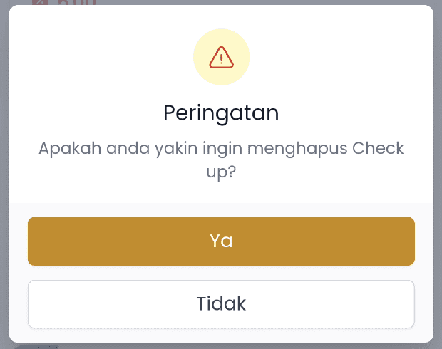 , pada salah satu data perawatan/tindakan - Lalu akan muncul pop up peringatan