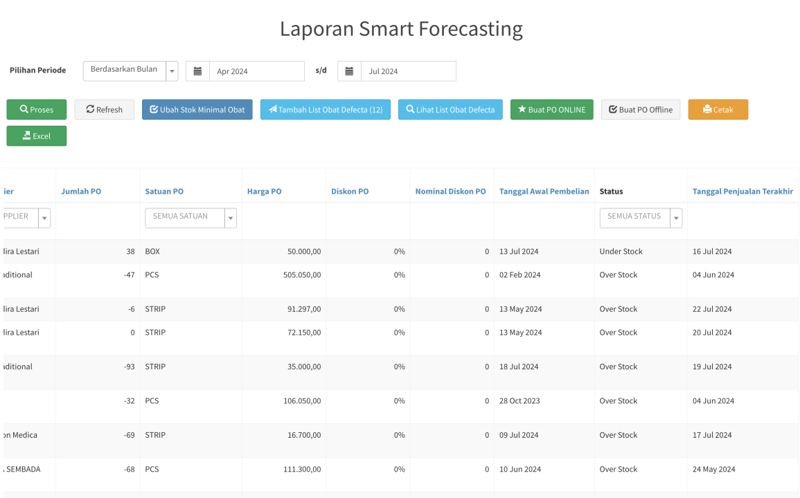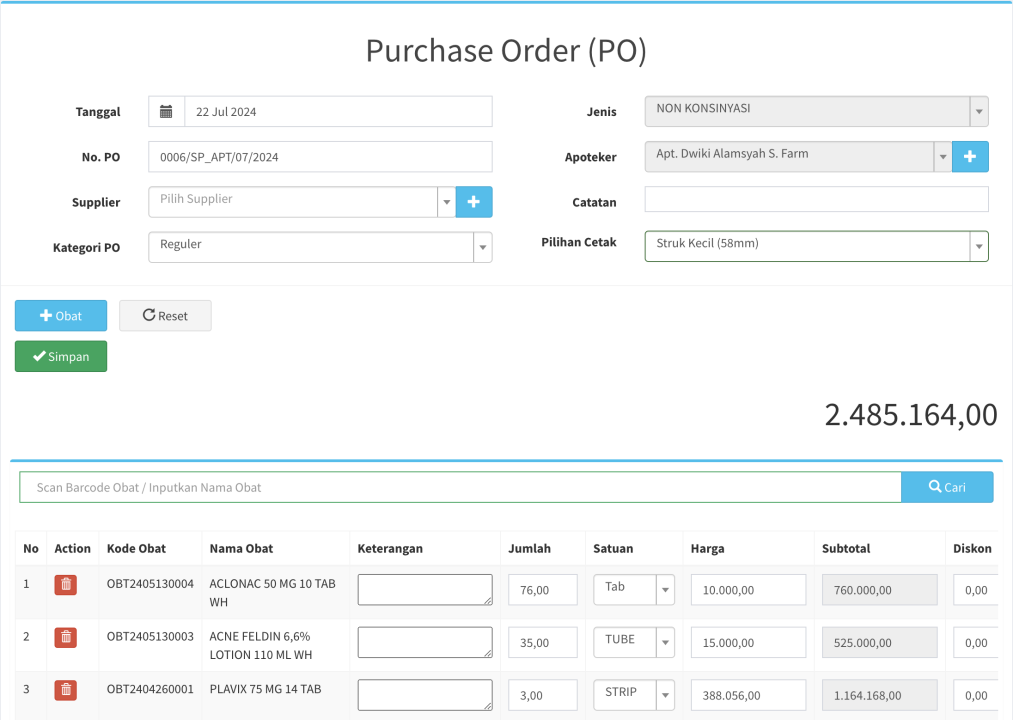 - Harga PO : harga beli obat saat melakukan PO