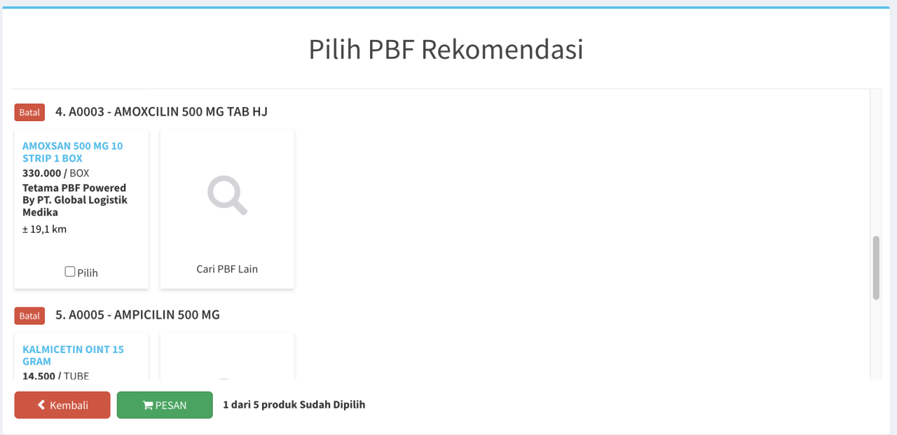 - Anda bisa memilih rekomendasi obat dari PBF tersebut atau PBF Lain