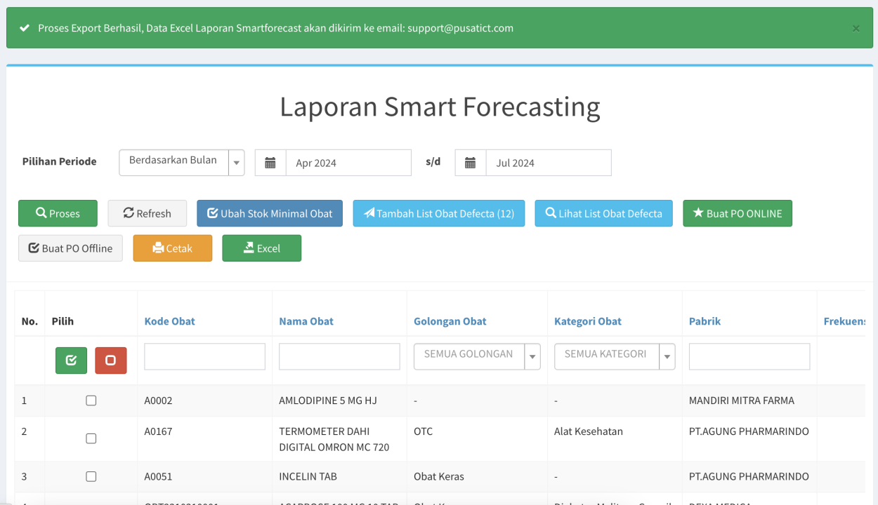 - Selanjutnya untuk mengambil / mencetak data smart forecasting ini, anda bisa mencetak atau mengeksport laporannya