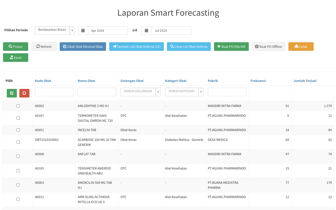 - Jumlah Terjual : Jumlah obat yang terjual selama periode
