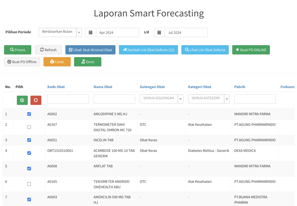- Untuk membuat PO, pertama pilih dulu obatnya dengan cara mencentangnya