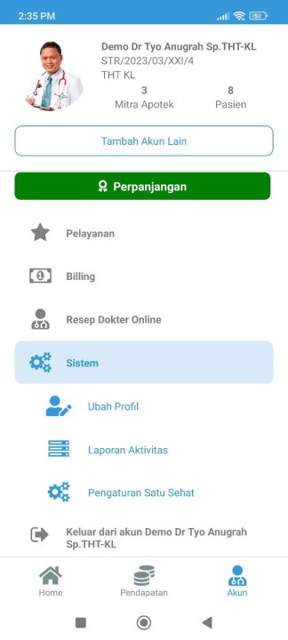 - Buka menunya di Menu AKUN> SISTEM > Pengaturan Satu Sehat