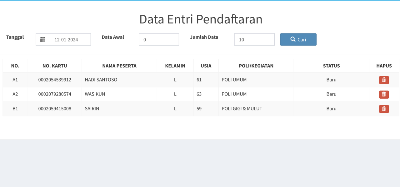 Data Entri pendaftaran BPJS Pcare ini berisi Data Kunjungan BPJS PCare yang telah anda buat sebelumnya dari menu Kunjungan Pasien.