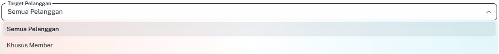 - Target Pelanggan: Tentukan apakah promo berlaku untuk Semua Pelanggan atau hanya Khusus Member.