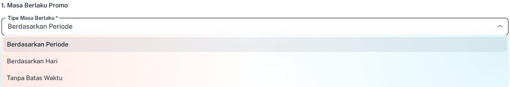 Berdasarkan Periode: Tentukan tanggal mulai dan tanggal berakhir promo menggunakan kalender.