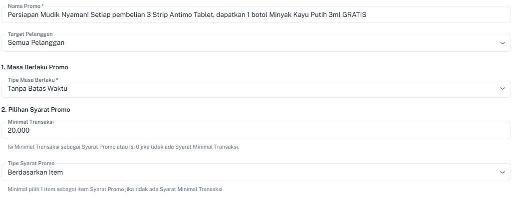 - Nama Promo: Masukkan judul promo yang akan dibuat.
