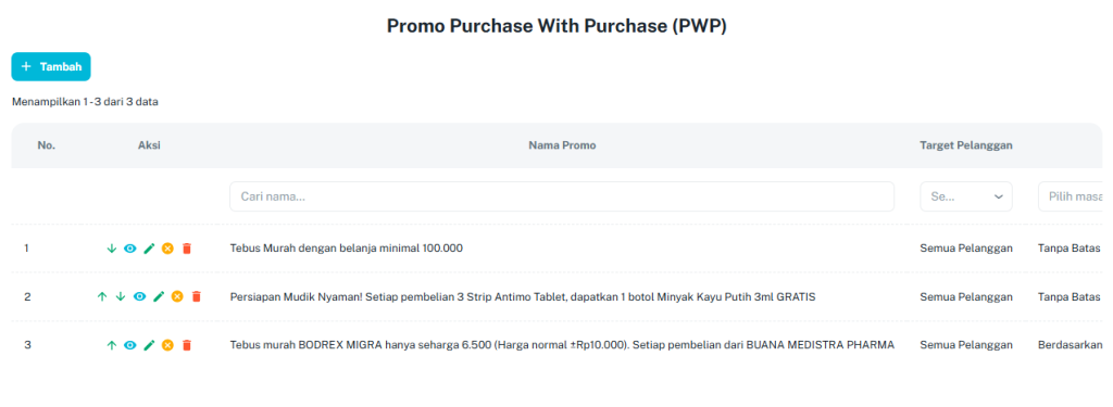 - Klik tombol + Tambah untuk mulai membuat skema promo baru.