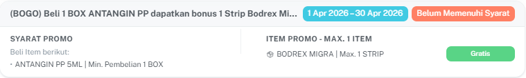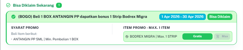 - Item promo akan otomatis masuk ke keranjang belanja dengan nominal harga sesuai dengan promo BOGO yang berlaku.