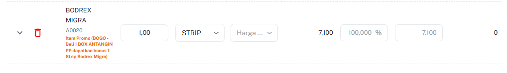 - Pada kolom item, akan muncul keterangan berwarna hijau yang menandakan item tersebut terkait dengan program promo tertentu.
