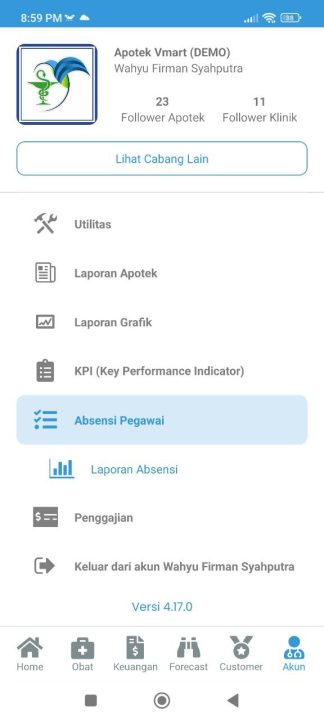 Laporan ini hanya berisi riwayat Absensi pegawai yang saat ini login di Vmedis Mobile. Pegawai tersebut bisa melihat Absensi mana yang sudah diverifikasi, mana yang belum, dan mana yang disetujui dan ditolak.