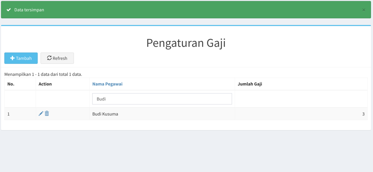 - Setelah anda selesai mengatur gaji karyawan, simpan dengan mengklik tombol