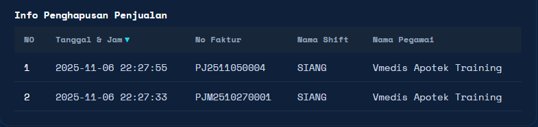 | Info Penghapusan Penjualan | Ditemukan 2 penghapusan penjualan. | Klarifikasi ke Co-Pilot: Tanyakan mengapa terjadi penghapusan penjualan. Akses ini seharusnya hanya dimiliki Store Manager/Co-Pilot. |