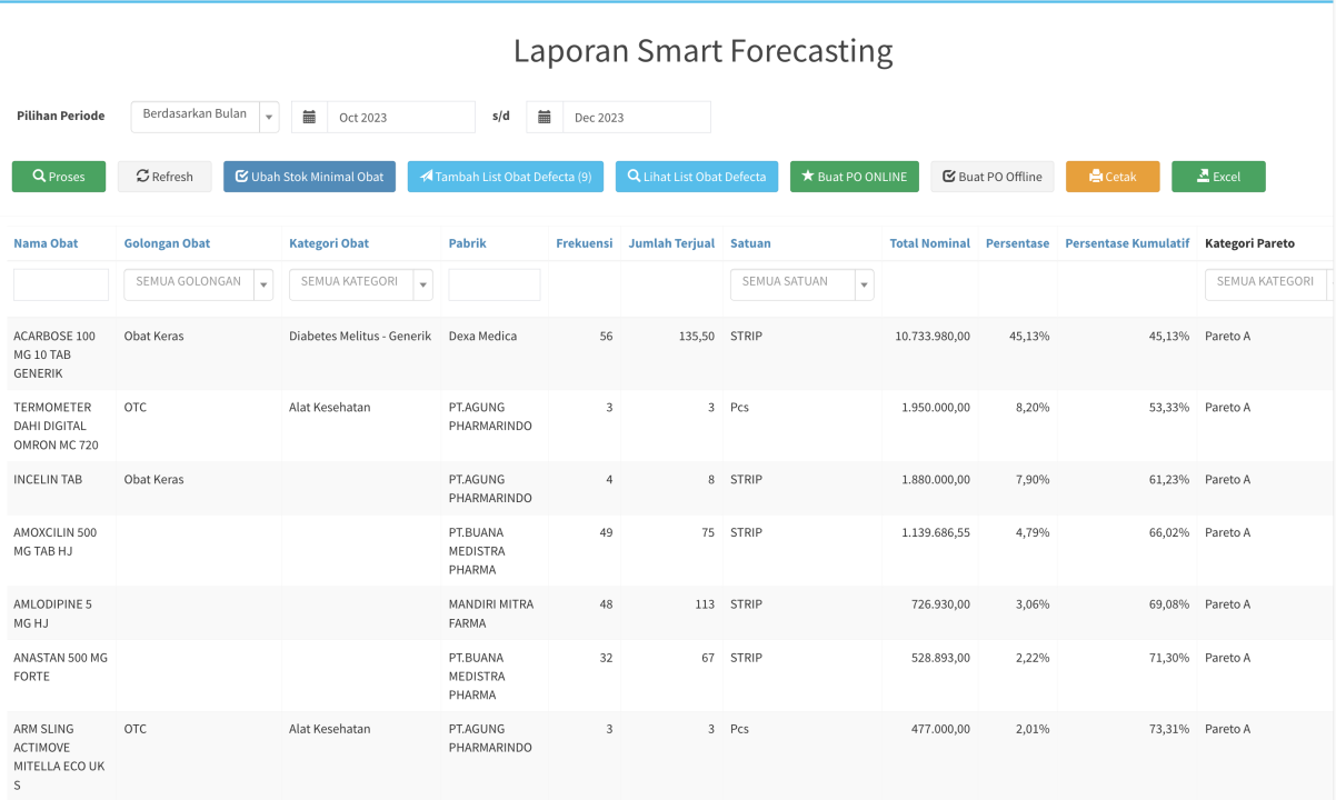 Dengan mengidentifikasi item kategori A, apotek dapat memfokuskan sumber daya untuk memastikan ketersediaan stok ini. Sementara item kategori B dan C dapat dikelola dengan lebih fleksibel untuk mengoptimalkan ruang penyimpanan dan modal kerja. - Strategi Pembelian:
